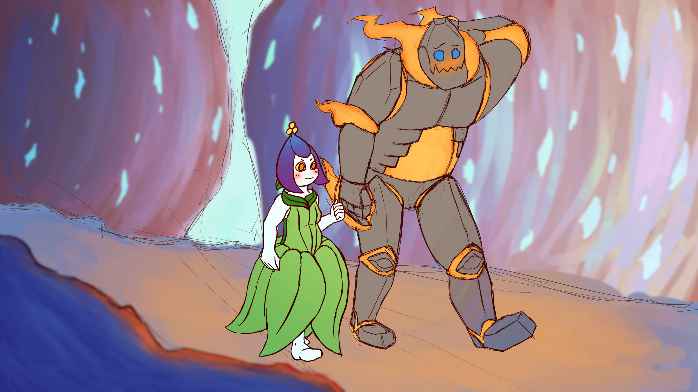 A gentle giant fire-rock monster and a plant princess from war-torn kingdoms build a friendship and perhaps peace between their kingdoms.